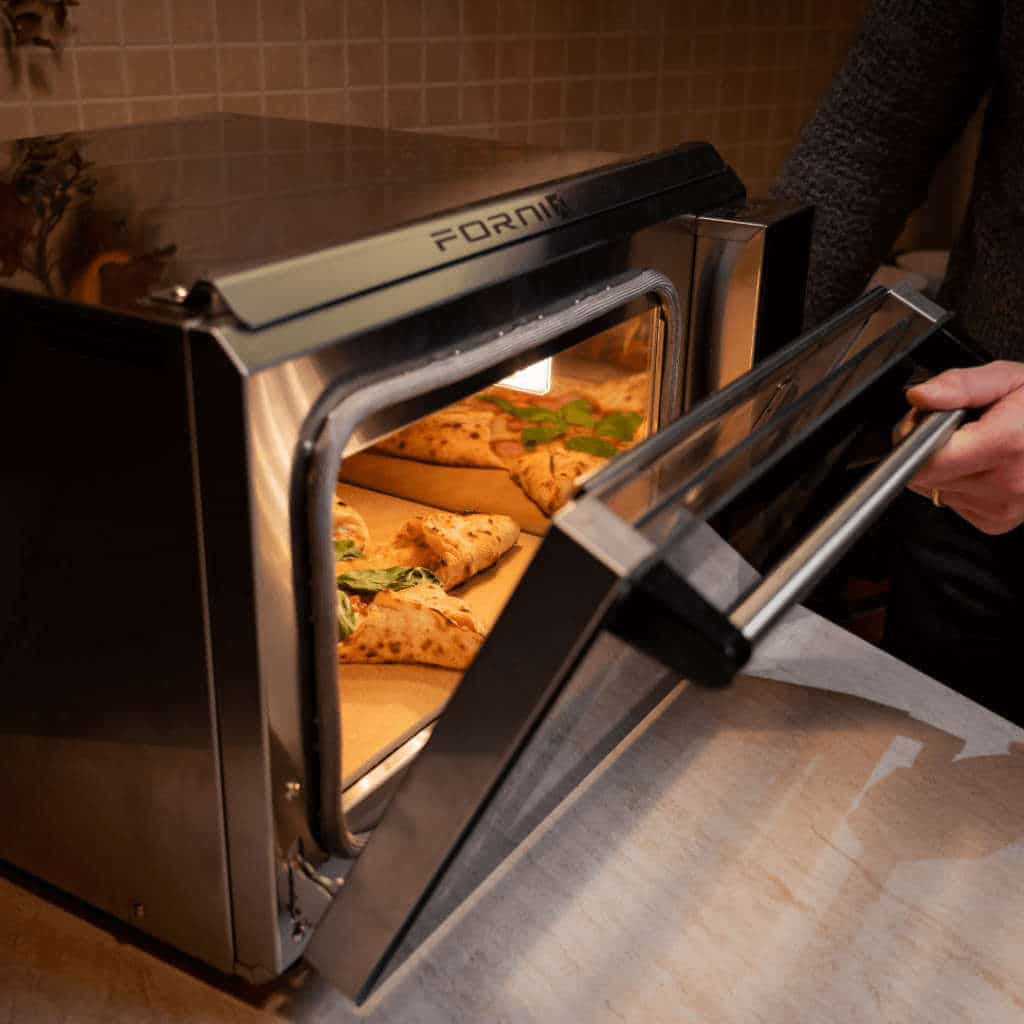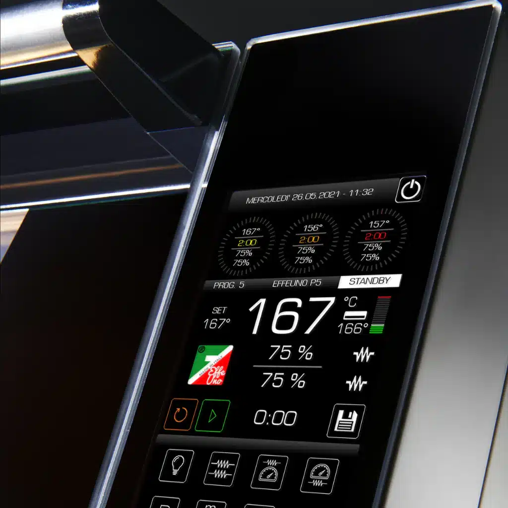Lò được trang bị bảng điều khiển kỹ thuật số trực quan, dễ sử dụng, giúp bạn cài đặt và điều chỉnh nhiệt độ chính xác. Công nghệ PID hiện đại cùng hơn 20 chương trình nướng cài sẵn đảm bảo pizza luôn chín đều, vỏ giòn rụm bên ngoài và mềm ẩm bên trong chỉ trong 90 giây.