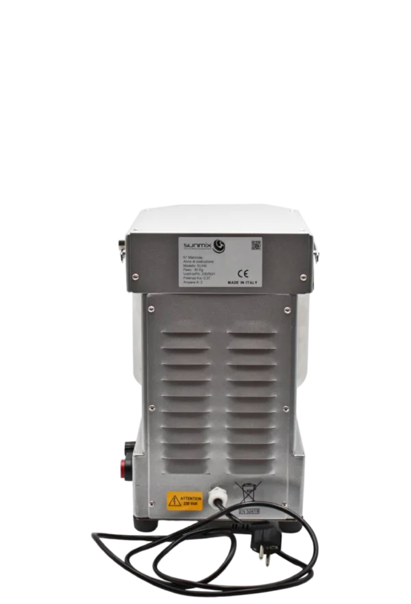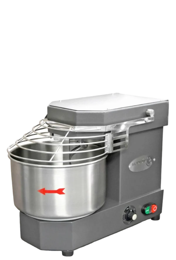 Máy trộn bột Sunmix SUN15 là một máy trộn bột nhỏ gọn, đáng tin cậy, công suất trộn lên đến 15kg, được sản xuất tại Ý, đặc biệt phù hợp cho các tiệm bánh nhỏ và cửa hàng pizza. Máy trộn bột Sunmix SUN15 có tô trộn bằng thép không gỉ với độ bền cao, tay trộn hình xoắn ốc. Tấm chắn an toàn bằng thép không gỉ, động cơ 1 pha có biến tần.